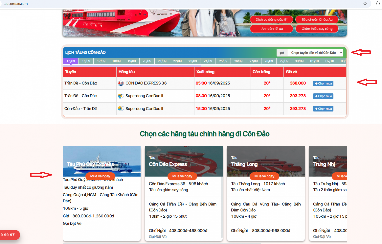 Bước 1: Mua vé tại: https://taucondao.com/ và chọn hành trình di chuyển.